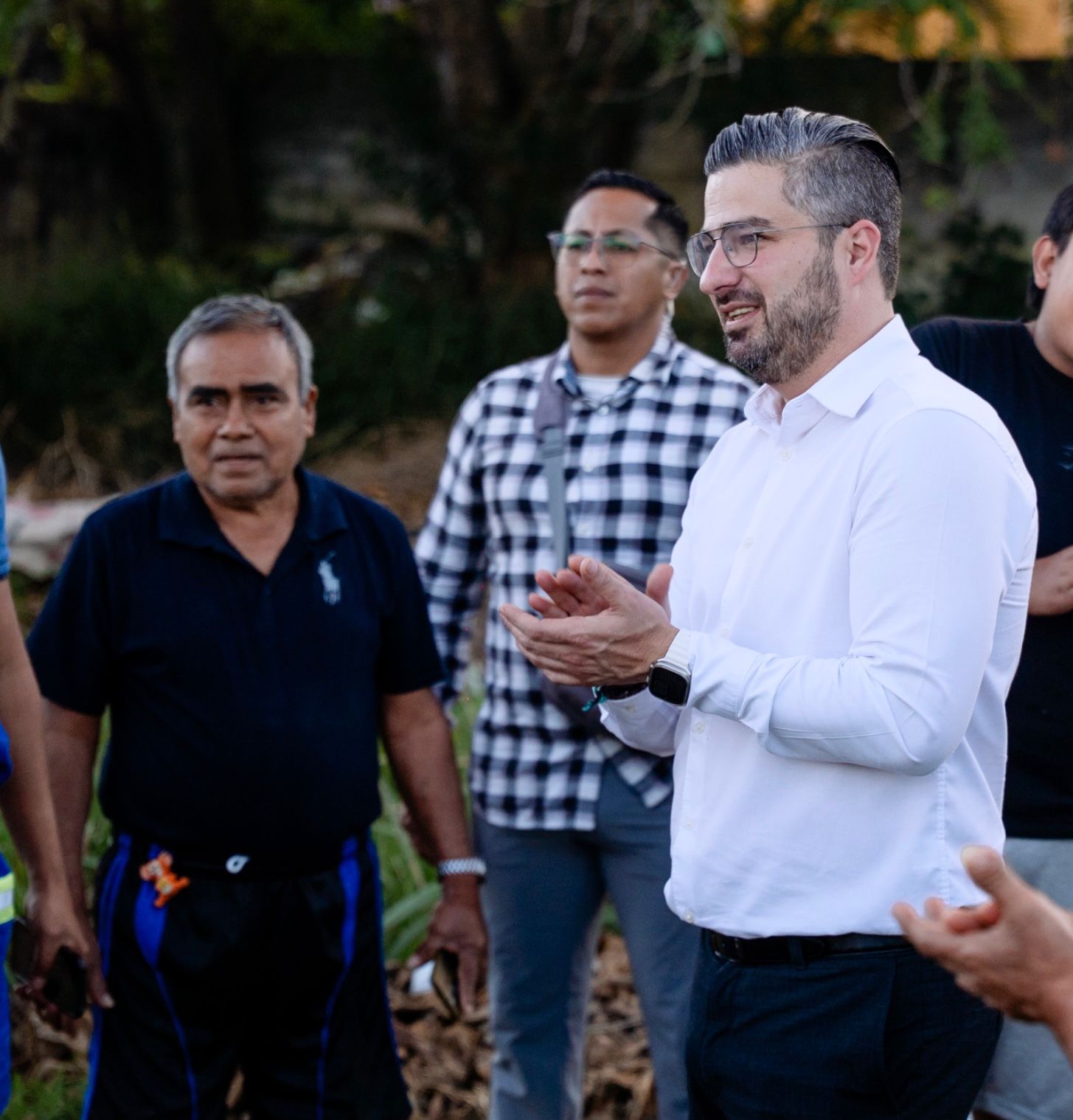 Durante la visita, el presidente municipal caminó junto a vecinas y vecinos para conocer de primera mano las principales solicitudes de la colonia, relacionadas con servicios municipales y obras públicas, como alumbrado, recolección de basura, rehabilitación de zanja pluvial, aguas negras y el mantenimiento del campo “Jorge Gutiérrez”.