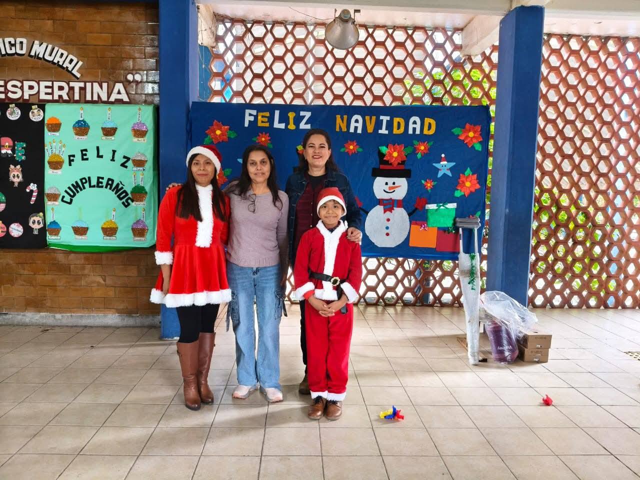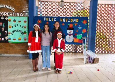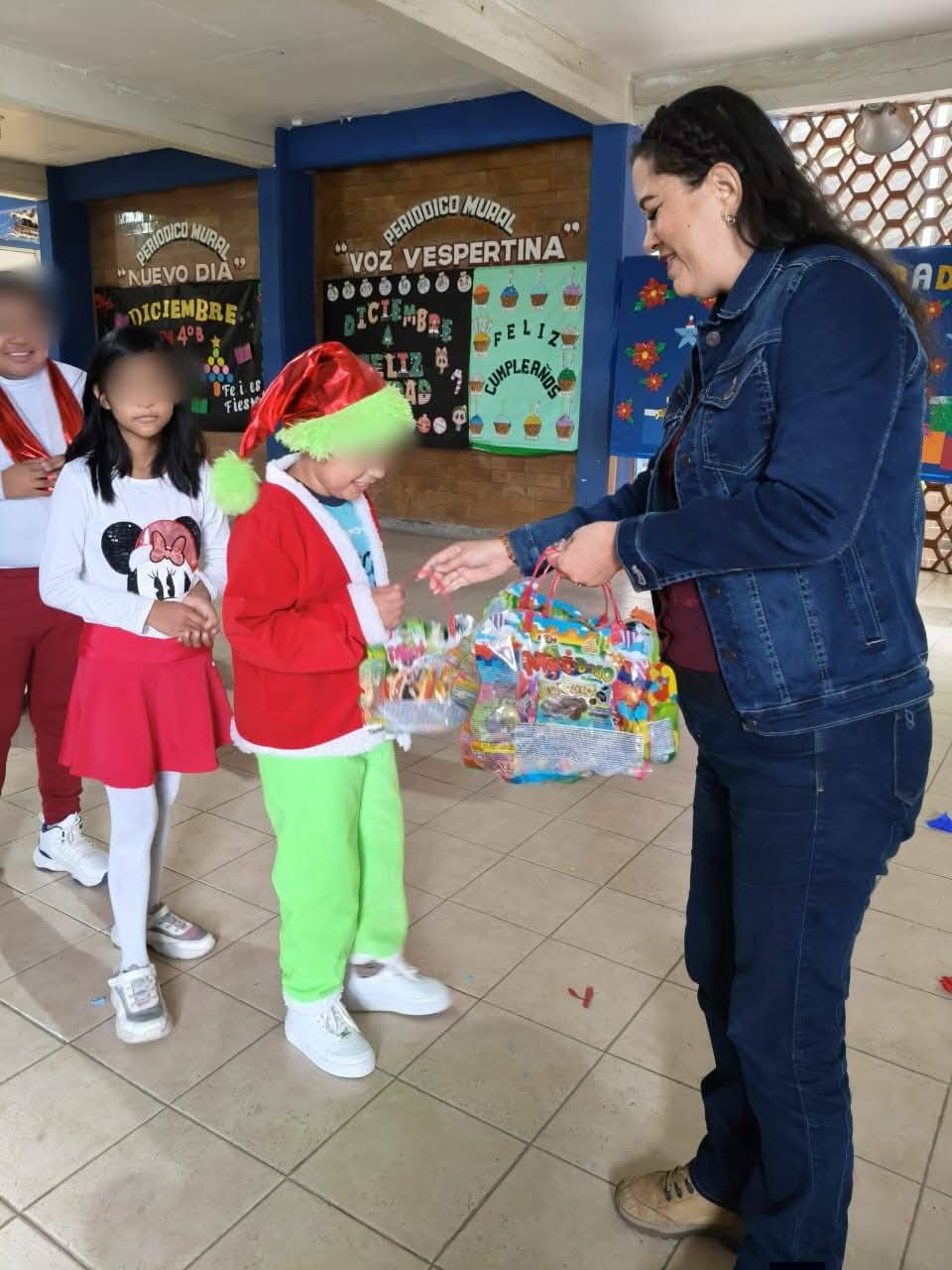 Posteriormente, acudió a la escuela primaria “Claudio Cortés Castro”, turno vespertino, donde también se celebraba la posada navideña, haciendo entrega de bolsas de dulces y diversos obsequios para los estudiantes.