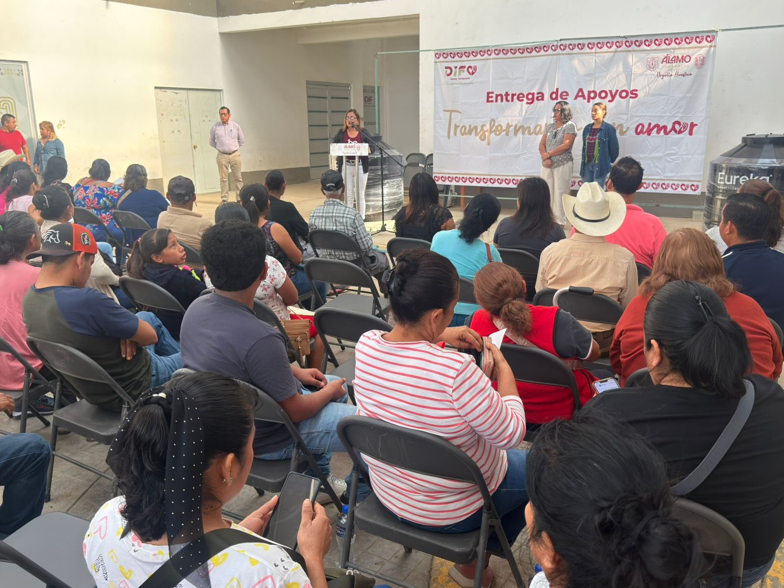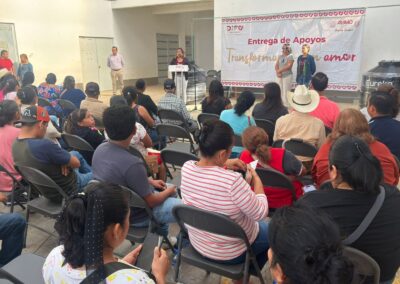 Con el acompañamiento de la presidenta del DIF, Asenet Castro Arrieta, se realizó la entrega de apoyos subsidiados como láminas y tinacos, contribuyendo a mejorar las condiciones de vivienda y a la recuperación de los hogares afectados.