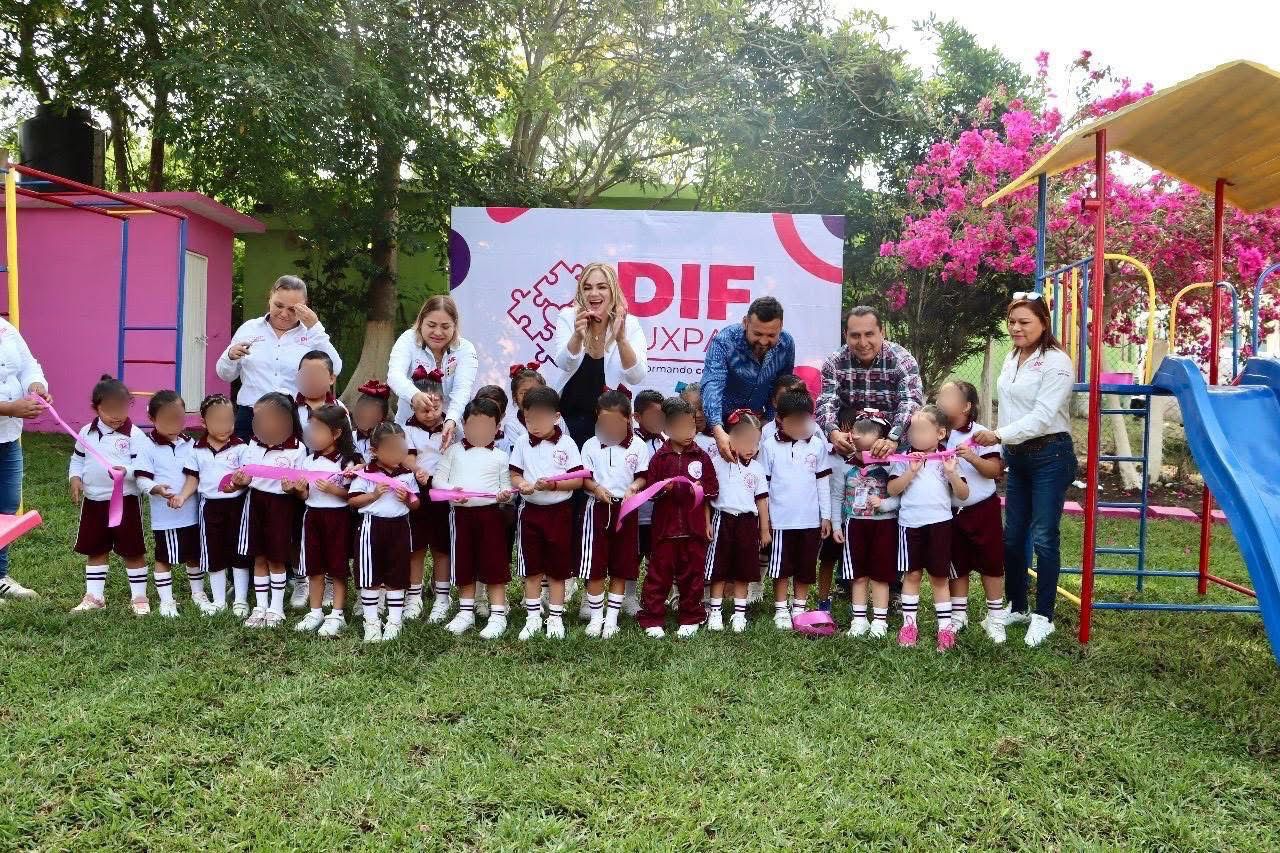 La presidenta del Sistema Municipal para el Desarrollo Integral de la Familia (DIF) Tuxpan, Melba López Gutiérrez inauguró las rehabilitaciones, áreas verdes y de juegos de los Centros de Asistencia Infantil Comunitarios (CAIC) de Sabanillas y Colosio.