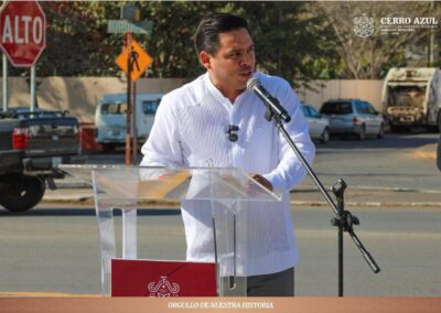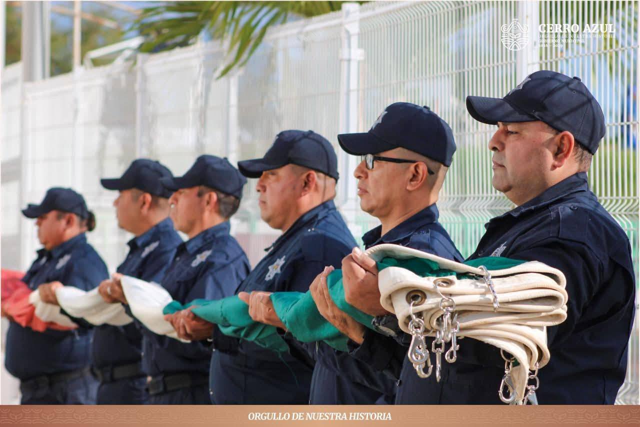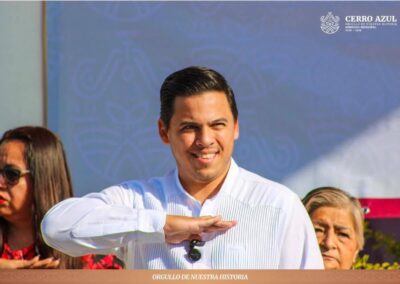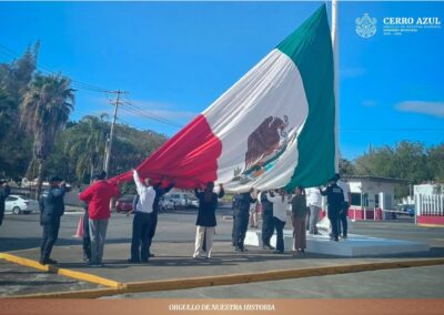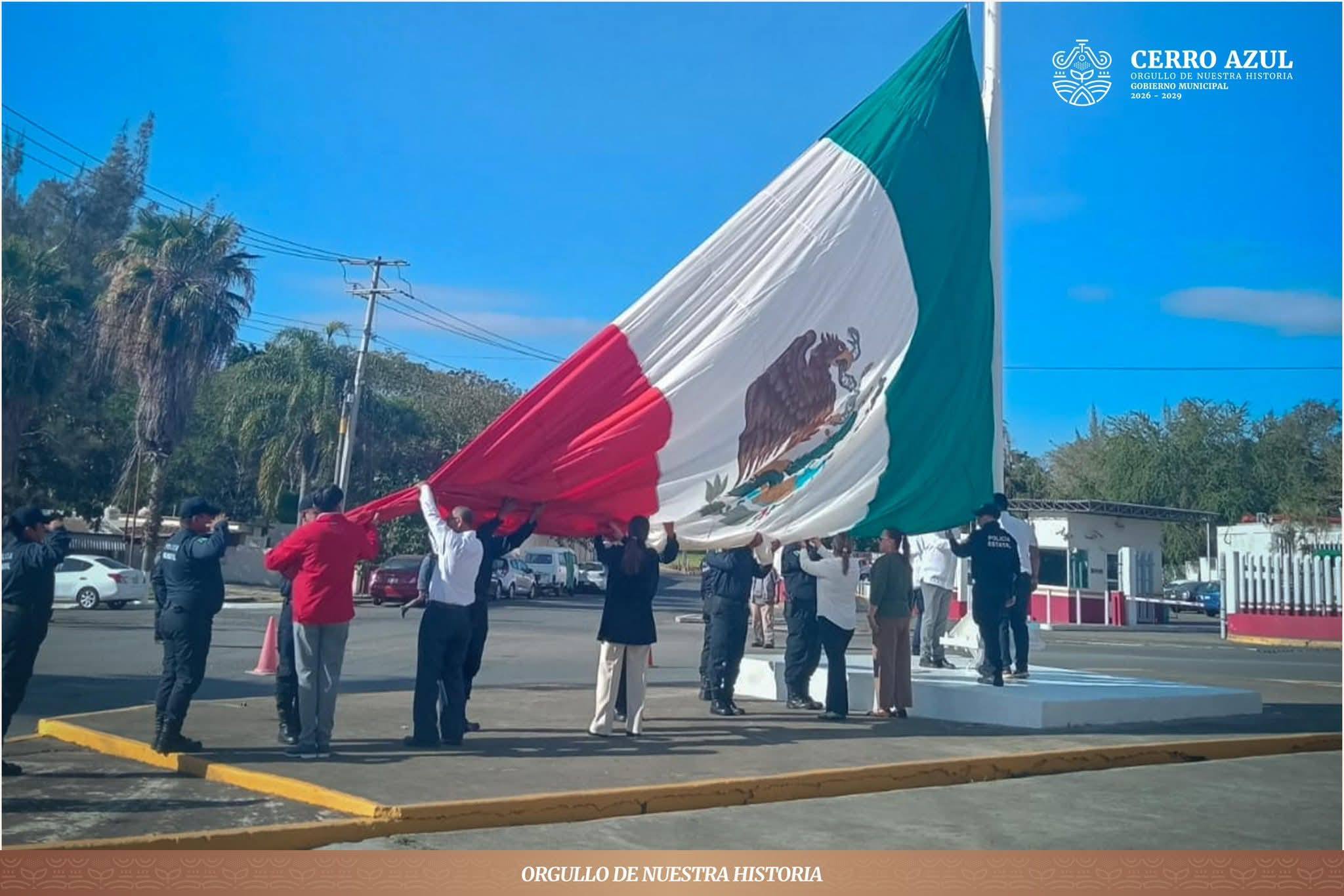 Cerro Azul, Veracruz.- El día de hoy se llevó a cabo la ceremonia de izamiento de la Bandera de México Monumental en la explanada de la Casa de Cultura, declarada recinto oficial para este acto cívico de gran relevancia.