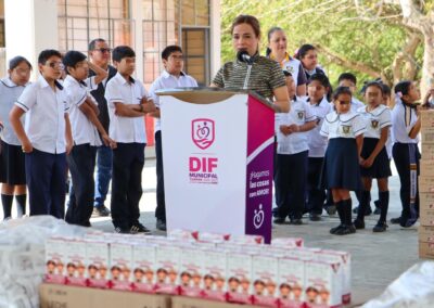 La presidenta del DIF subrayó que una adecuada alimentación contribuye al desarrollo integral de las niñas y los niños, además de brindar tranquilidad a las familias y favorecer un entorno educativo más equitativo.