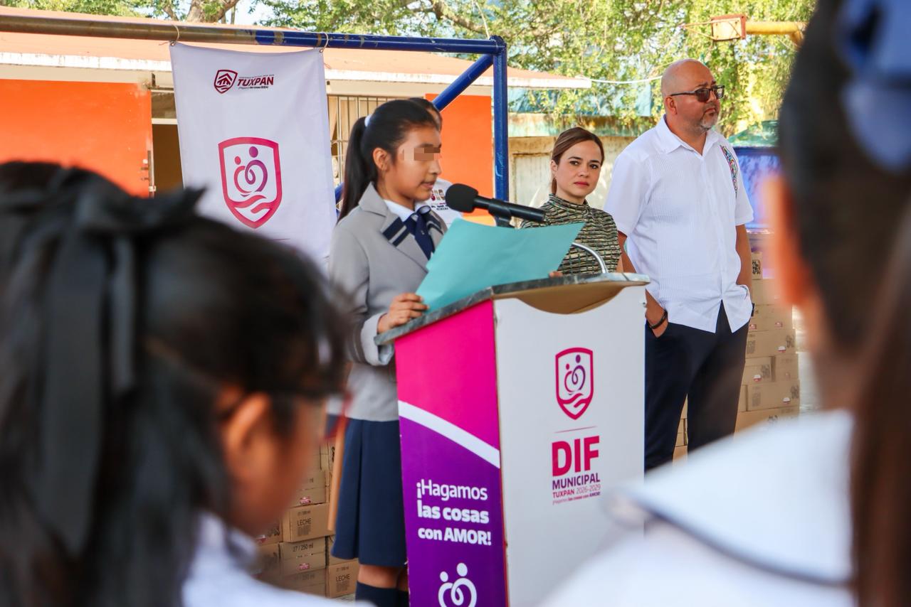 El arranque del programa se llevó a cabo en la escuela primaria “Justo Sierra” y fue encabezado por la presidenta del DIF Tuxpan, Marisol Martínez Barrios, quien destacó que estas acciones fortalecen la nutrición y el rendimiento escolar de la niñez tuxpeña.