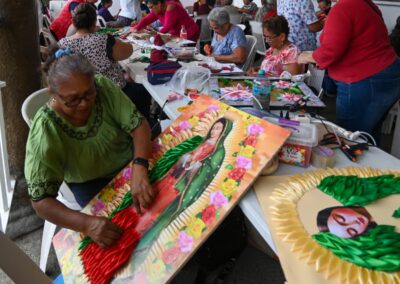 Este jueves en la planta baja de presidencia, decenas de personas acudieron para trabajar en la elaboración de cuadros con motivos navideños. La fundación Sin Miedo a Trabajar Contigo es la encargada de impartir este taller en donde decenas de mujeres asistieron para realizar manualidades con listones.