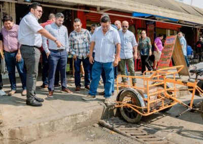 Durante la visita, el presidente municipal estuvo acompañado por los titulares de las direcciones de Comercio, Servicios Públicos Municipales, Obras Públicas, Desarrollo Social así como Oficialía Mayor, con quienes supervisó distintas áreas del mercado, desde el interior hasta el exterior del edificio.