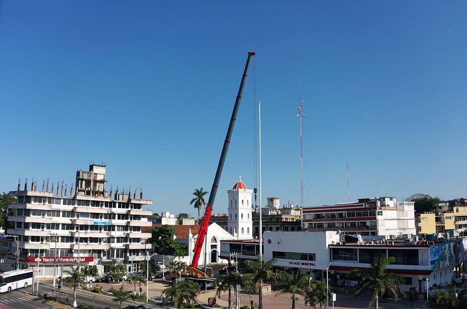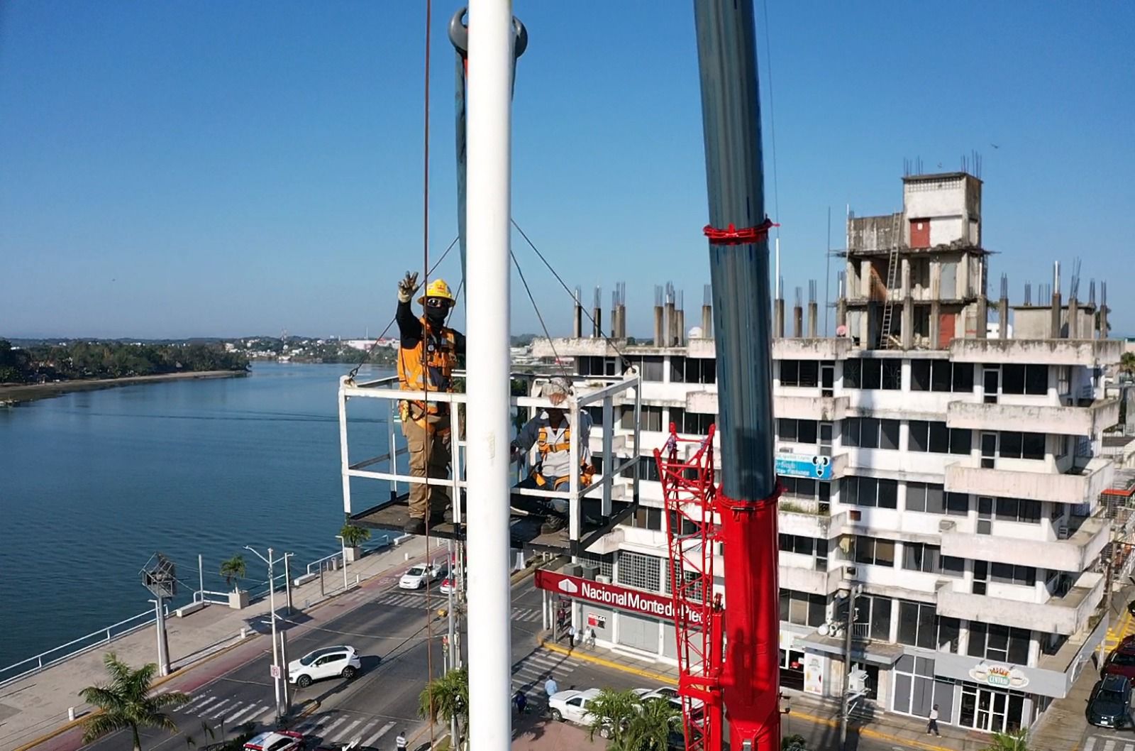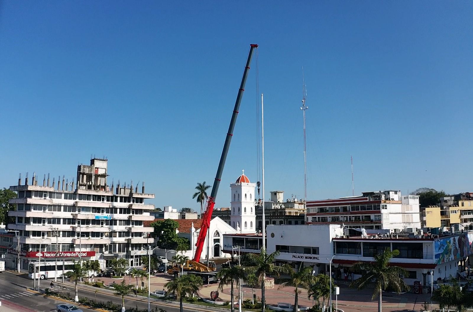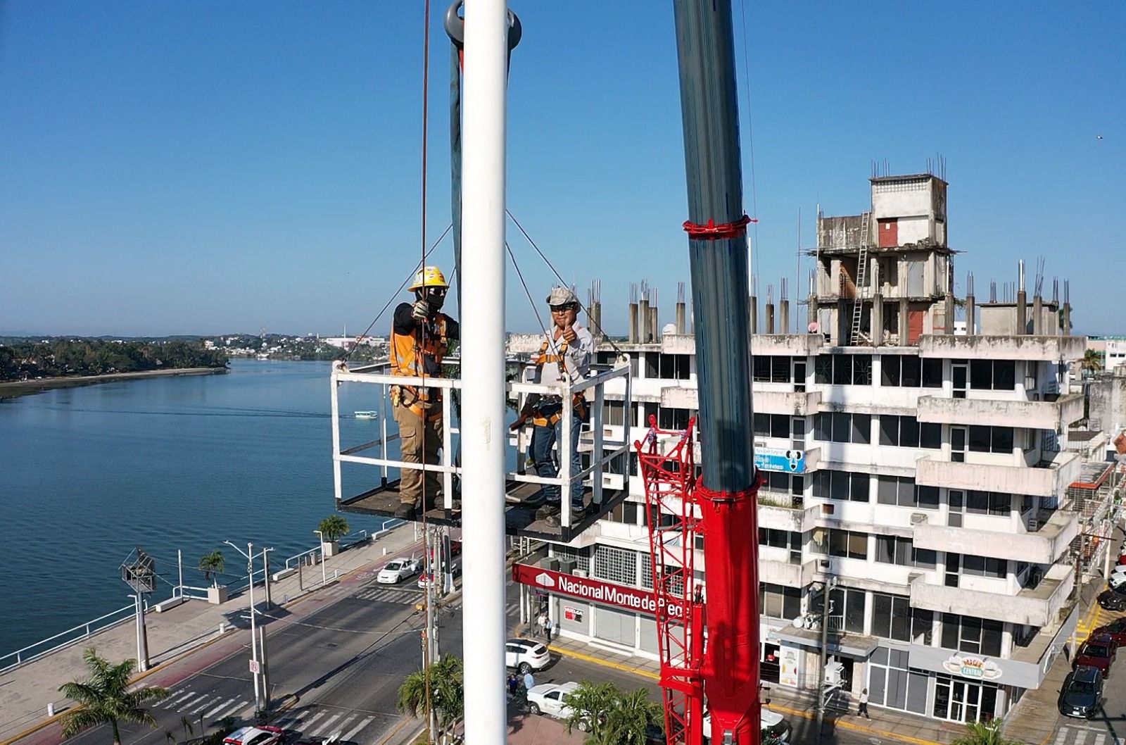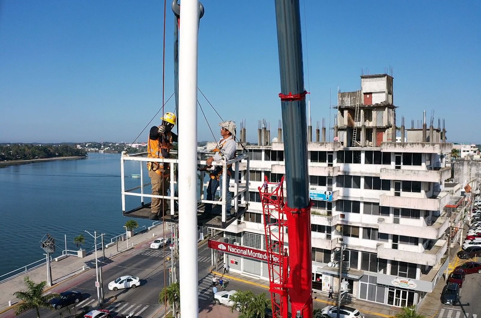 Tuxpan, Veracruz a 16 de febrero de 2026.- Por instrucciones del presidente municipal de Tuxpan, Daniel Cortina, este lunes por la mañana se llevaron a cabo trabajos de mantenimiento en el asta bandera ubicada en la Plaza Cívica Municipal, a un costado de la Presidencia Municipal.